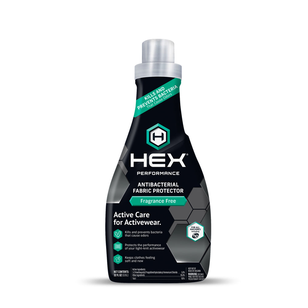 HEX Fabric Protectors wash in extra odor protection and preserve breathability, wicking, stretch, and softness while reducing static.